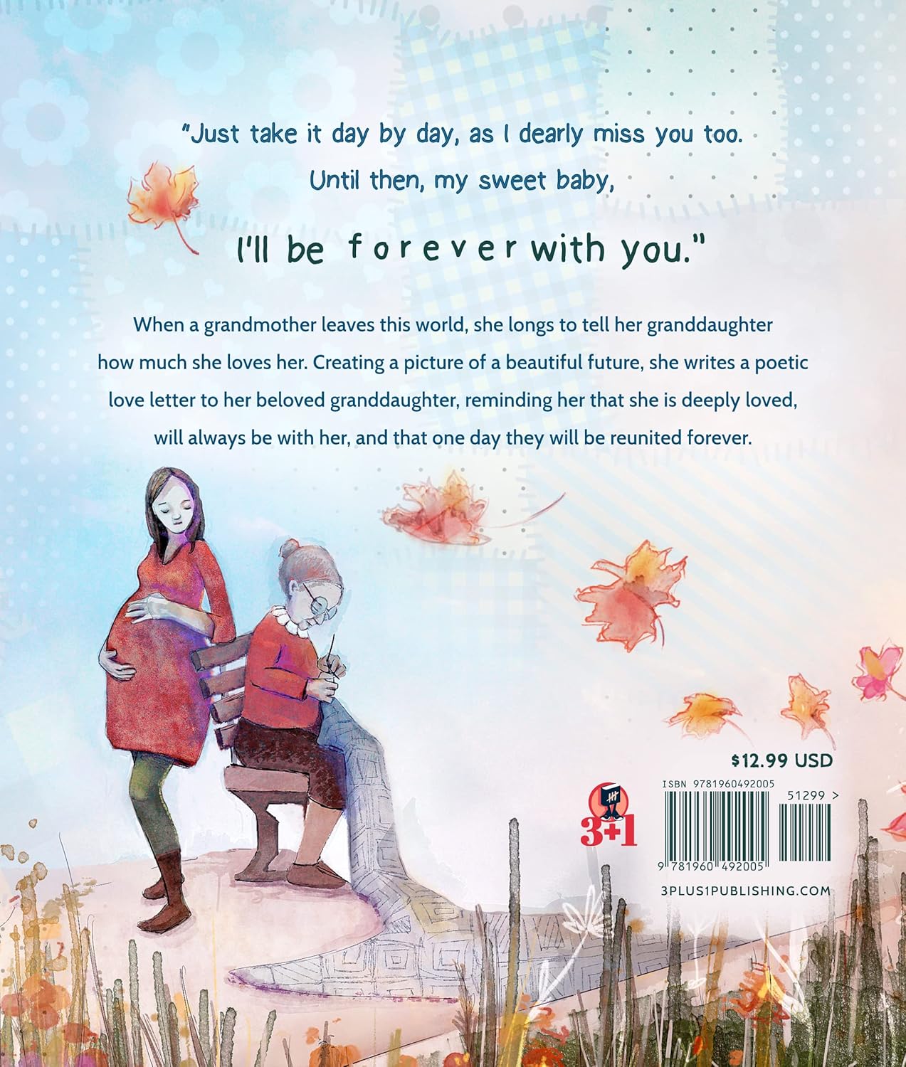 Although grandmother never had the pleasure of meeting her granddaughter, she weaves a reassuring message of love for the child and imagines the joy and wonder of what it would have been like to watch her grow up. Grandmother shares that while the two may never meet, the love she feels for her will always live on in her granddaughter’s heart.