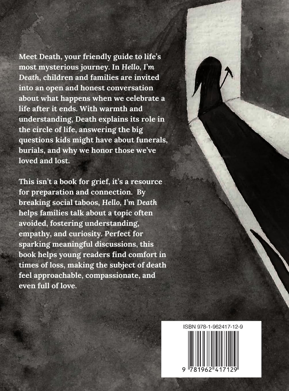 In Hello, I’m Death, children are gently guided through the often mysterious and tender process of saying goodbye to loved ones. The story follows a kind and friendly character, Death, who helps young readers understand what to expect at a funeral and why these ceremonies are important. Through warm, comforting illustrations and simple, age-appropriate language, loveable Death walks children through every step of the journey-helping them understand feelings of sadness, moments of remembrance, and ways to celebrate the life of the person they’ve lost. Along the way, this story answers questions children may have, offering a comforting perspective on death, grief, and the enduring love that remains.