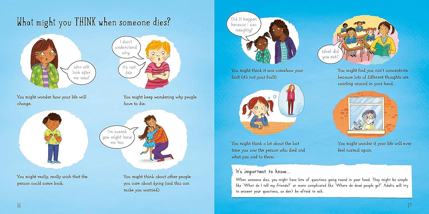 From Molly Potter, best-selling author of How Are You Feeling Today? and What’s Worrying You?,comes a picture book for starting conversations with children about death, bereavement and what happens next. When someone dies, we can feel a whole host of different emotions and explaining them to a child isn’t so easy. This book uses clear, easy-to-understand language to answer complex questions about death and how a child might feel when someone dies. It covers all manner of tricky subjects with sensitivity and honesty, from what death is to why people die. Each double page spread takes a child through how they might feel, what they might think and how they might behave. With engaging illustrations, gentle guidance and simple advice for parents and carers, Let’s Talk About When Someone Dies fulfils an important but difficult need for starting conversations with children about death and bereavement, in an accessible and supportive way.