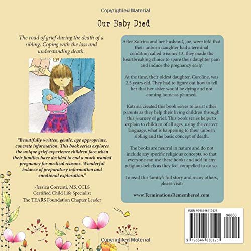 ★★(This book-labor and delivery version)★★Our Baby Died. There are 2 versions of this book. One is written for the parents that underwent a surgical termination, and the other is for parents going through termination via labor and delivery. The books walk your child through what to expect in their grief during these specific moments.
