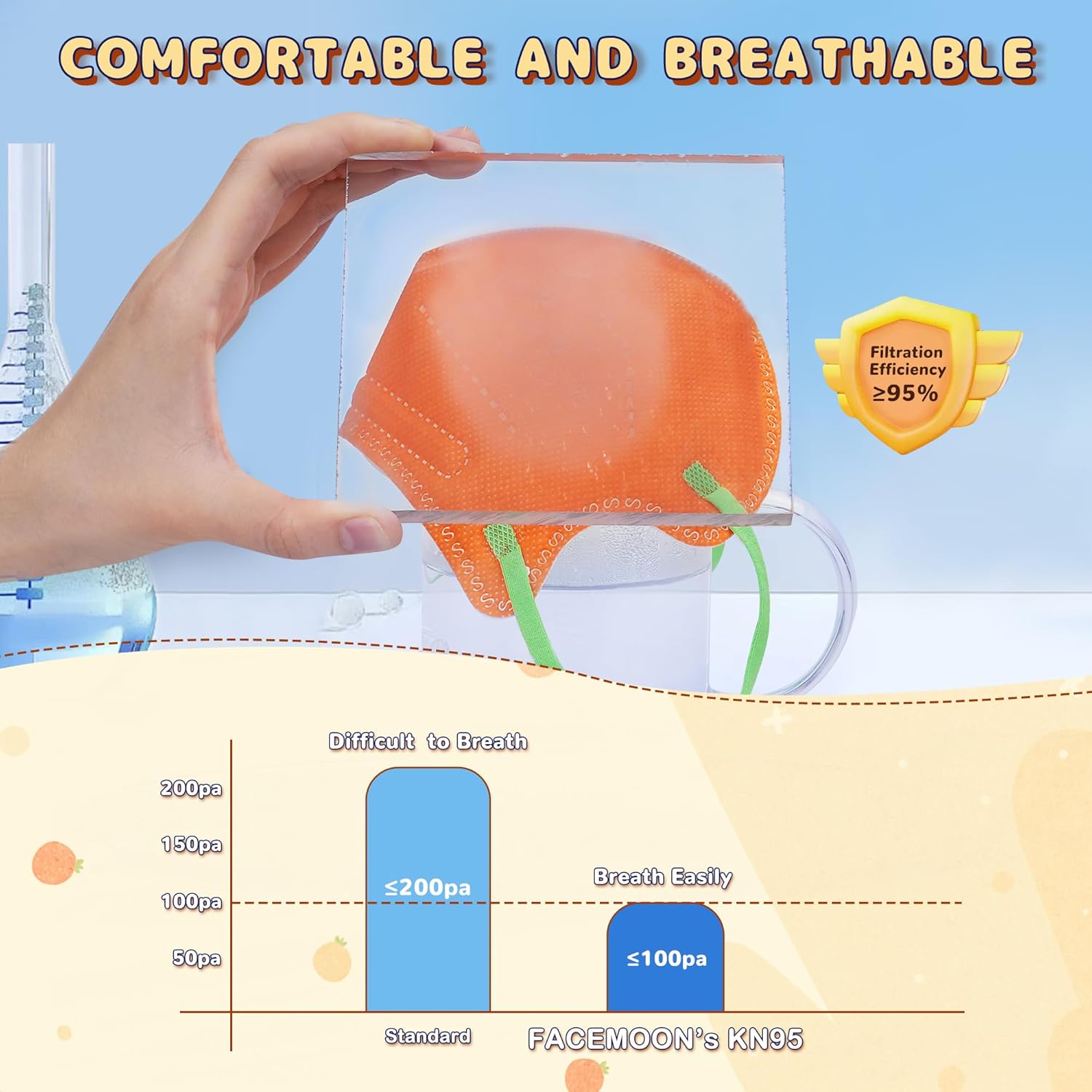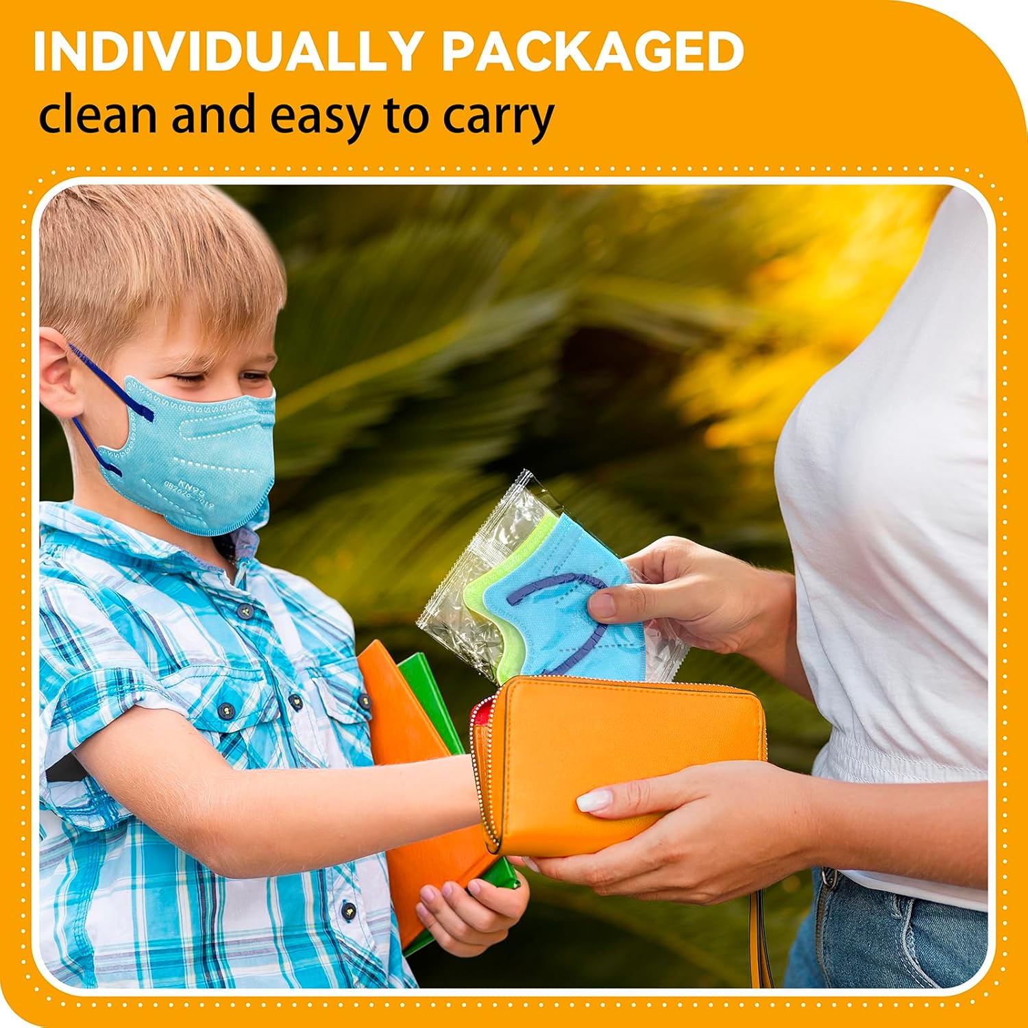 KN95 Masks Disposable for Kids, 5 Layer Protection 100 Pack Individually Wrapped KN95 Masks Children Size Breathable Adjustable Face Mask for Girl and Boy, Mascarillas para Niños Aged 4-12