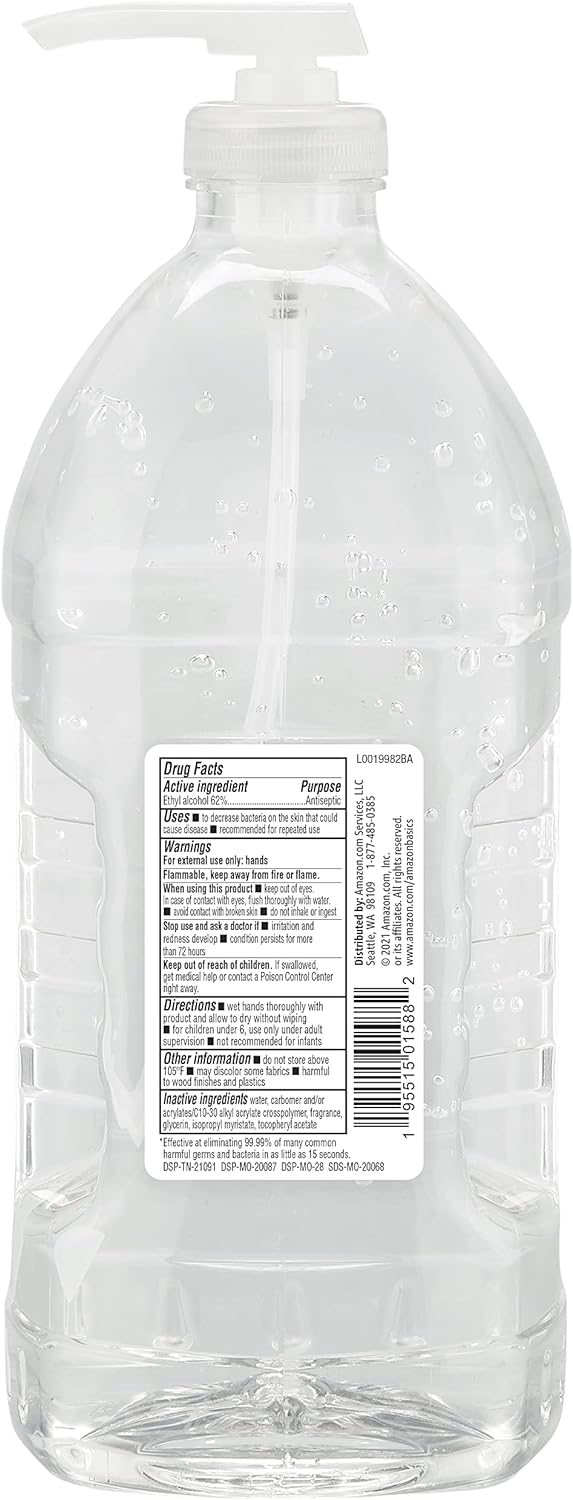 Amazon Basics Hand Sanitizer, Original Scent, Contains 62% Ethyl Alcohol, 67.60 Fl Oz (Pack of 1) (Previously Solimo