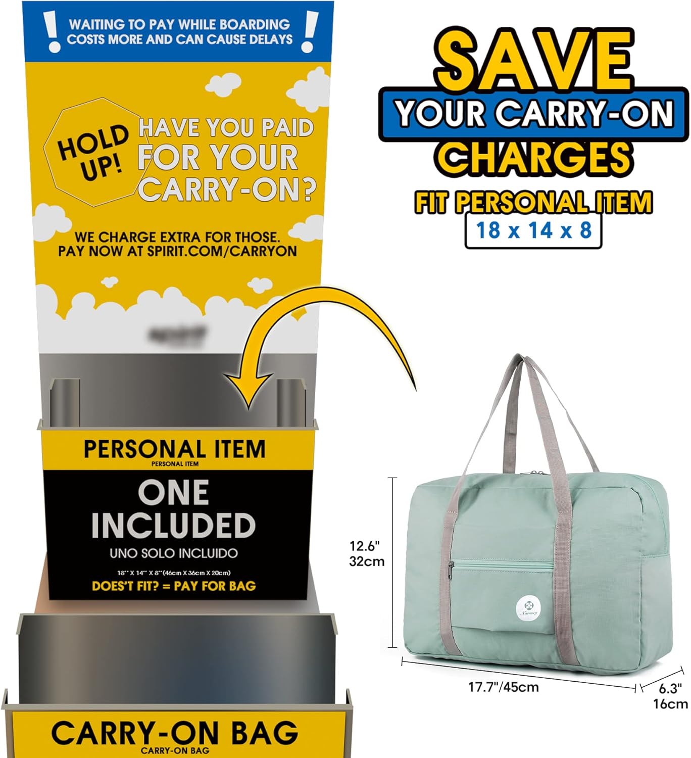 For Spirit Airlines Personal Item Bag 18x14x8 Foldable Travel Duffel Bag Tote Carry on Luggage Duffle Overnight for Women and Men