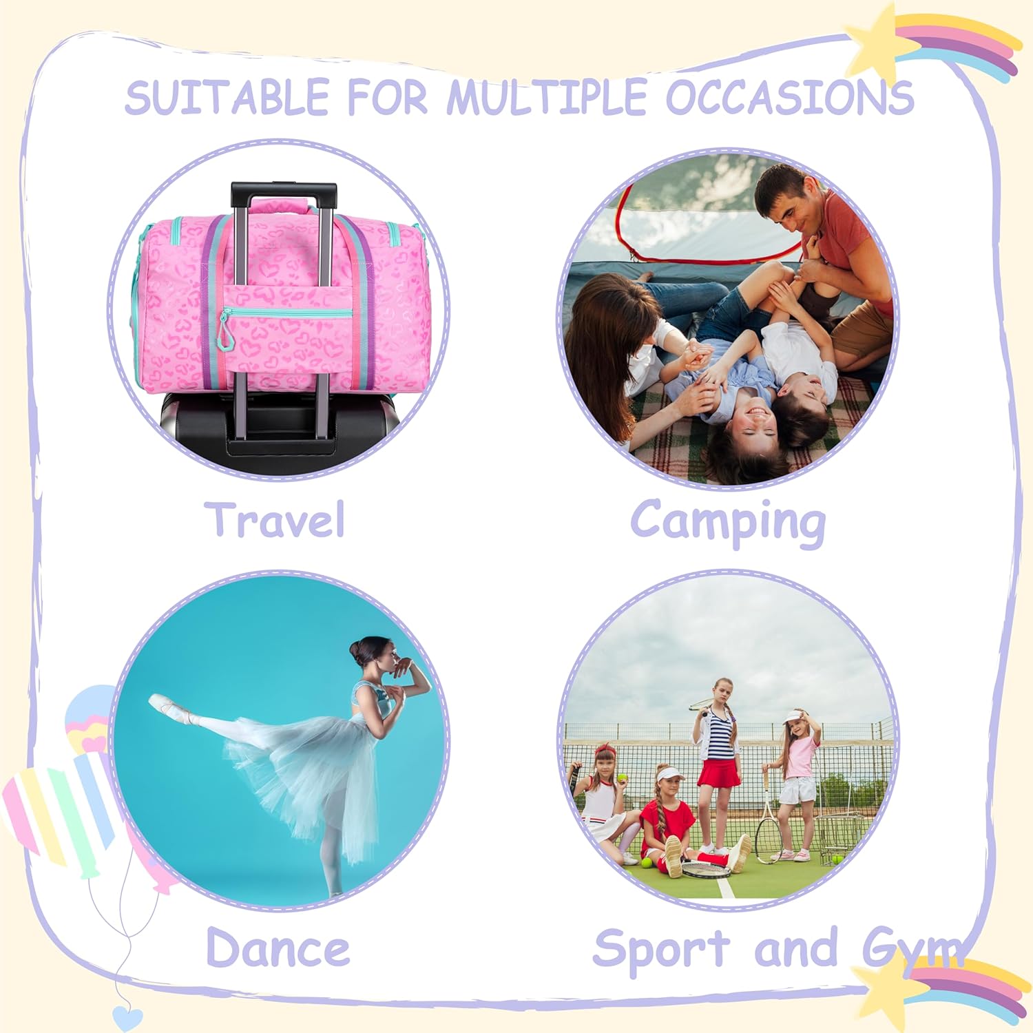 Kids Duffle Bag Girls Women Travel Bag Gifts Overnight Bag for Girls Women Tote Bag Sleepover Bag for Girls Gym Dance Bag with Shoes Compartment