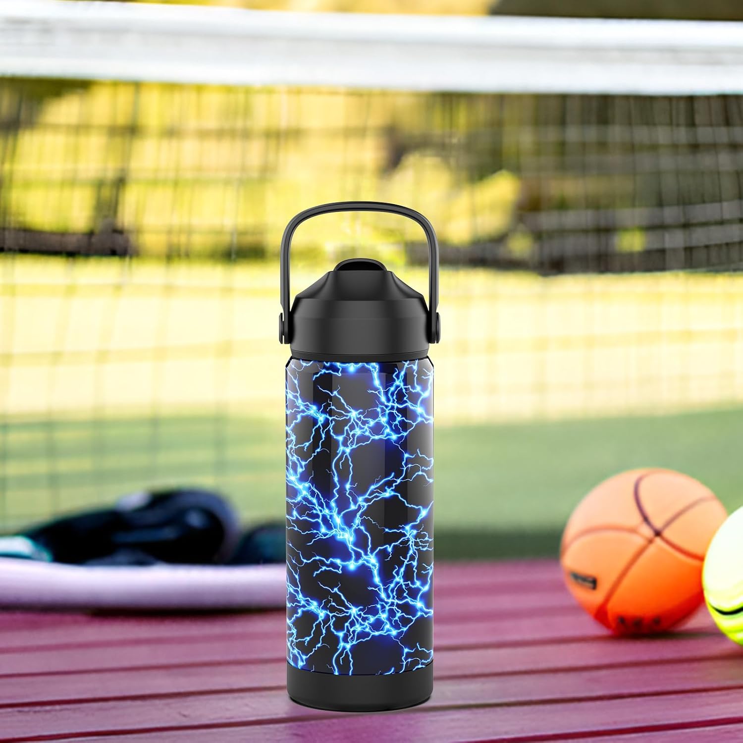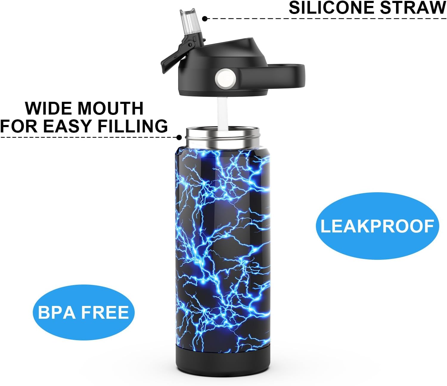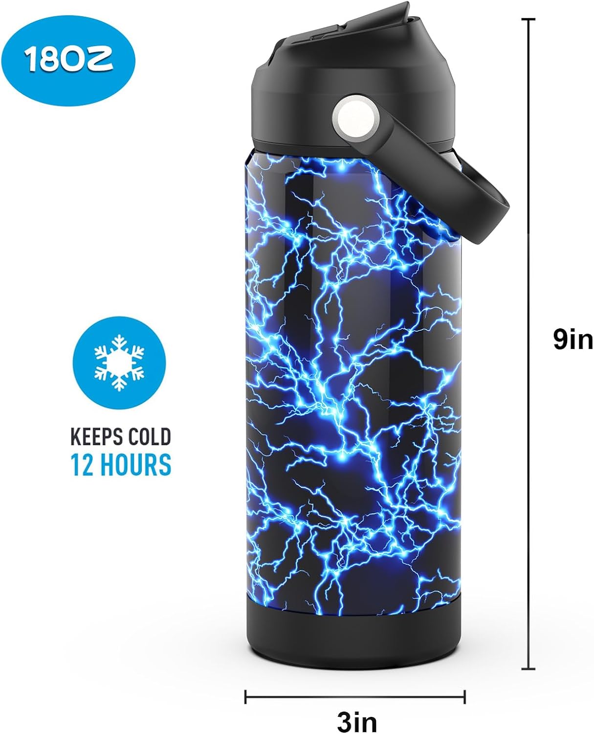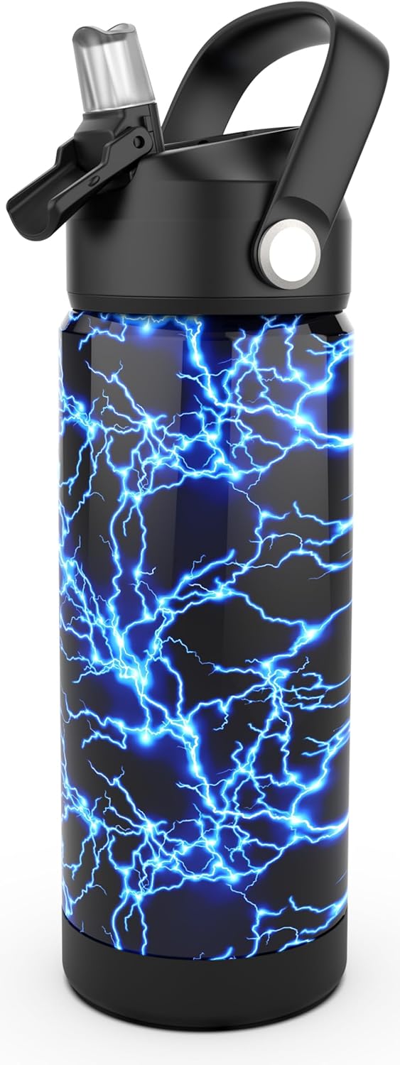 Boys Water Bottle with Straw,18oz Kids Insulated Cups with Stainless Steel Leak Proof for School Boys Girls(Lightning)