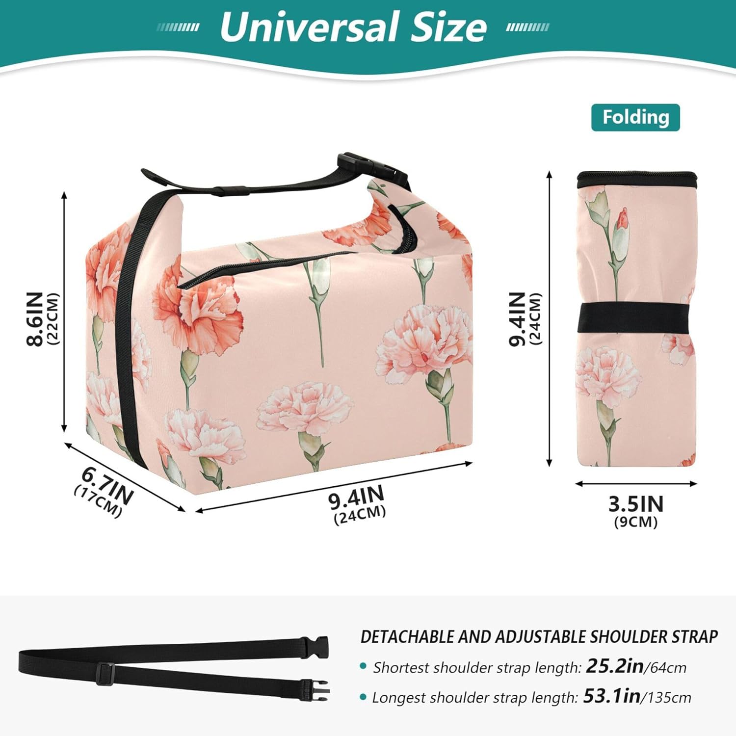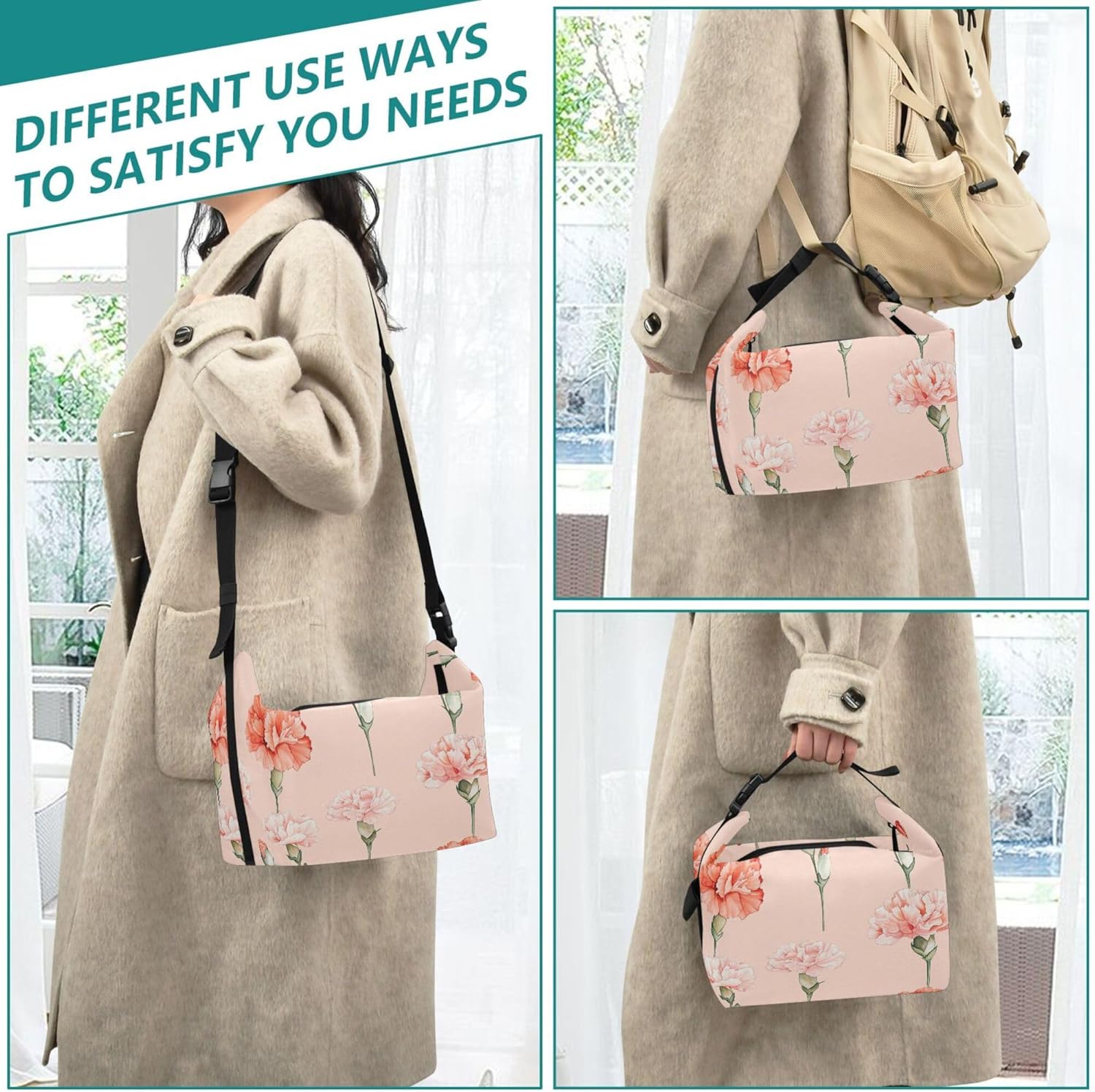 Multiple Using Ways: Lunch Bags for Girls is designed with an adjustable latch handle. Hand-carrying is easy and elegant for commuting, 1-shoulder carrying is casual and fashionable. Long enough, adjustable to fit your body.
