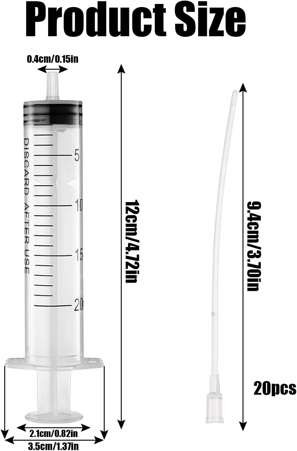 【Package Includes】1pc 20ml feeding syrine, 20 pcs extension injection catheters.