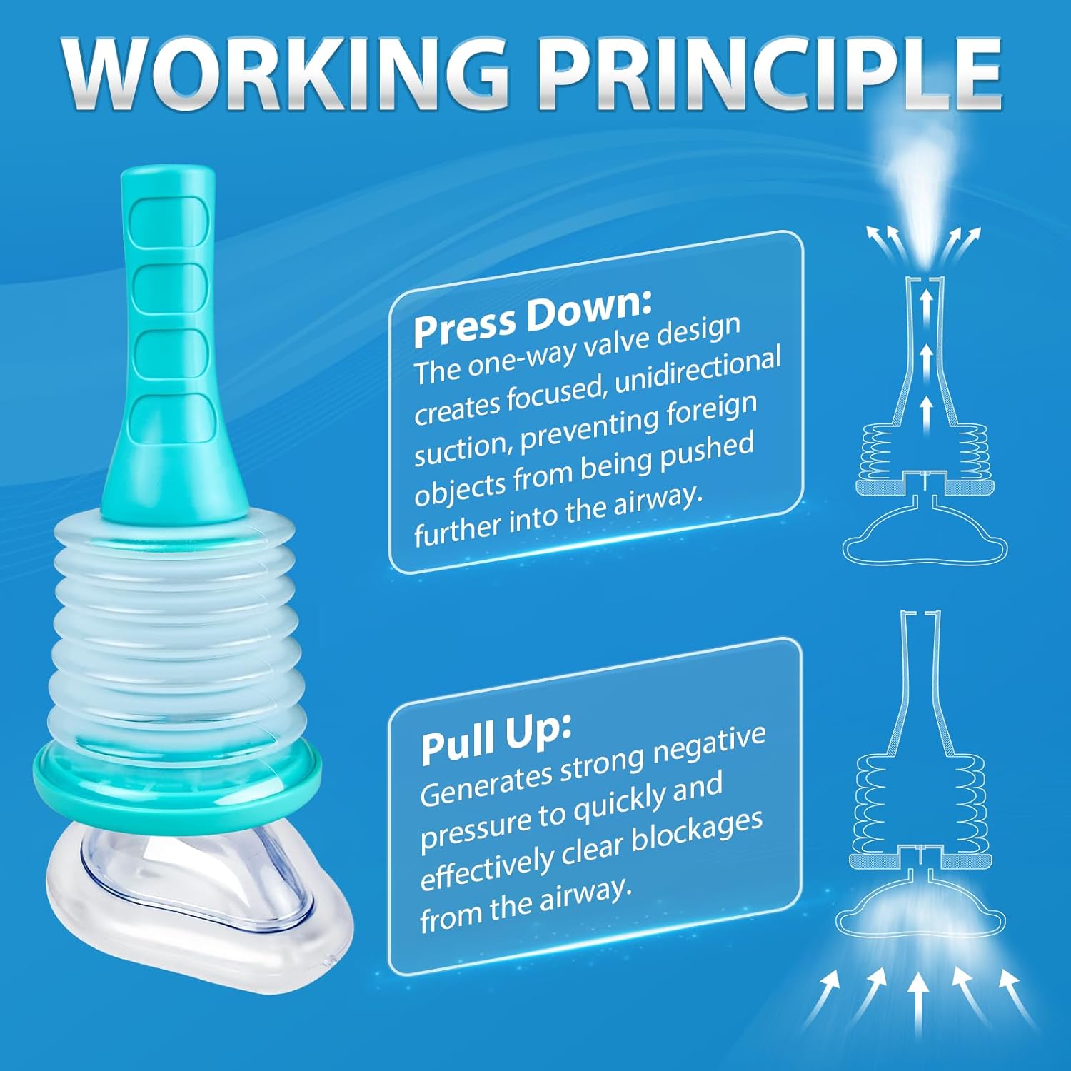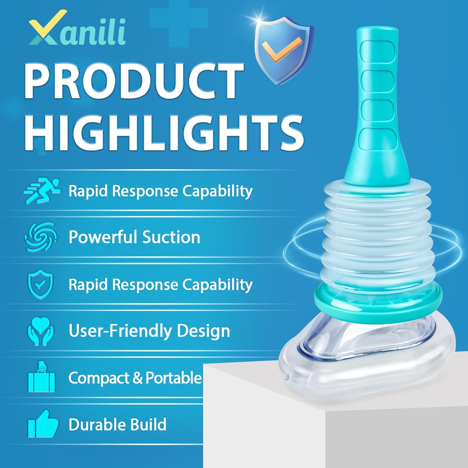 Xanili Choking Rescue Device is both safe and effective. It features a one-way valve design that ensures one-way suction, making it easier to quickly clear blocked objects from the airway.