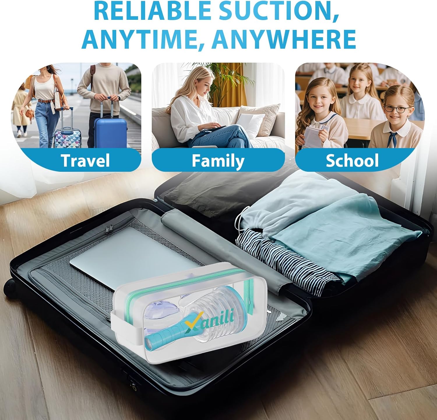 This compact and portable suction device is easy to use. It’s a fantastic first aid tool for your home, school, hospital, travel, or outdoor adventures. The non-invasive Xanili device is designed to save lives during airway emergencies.