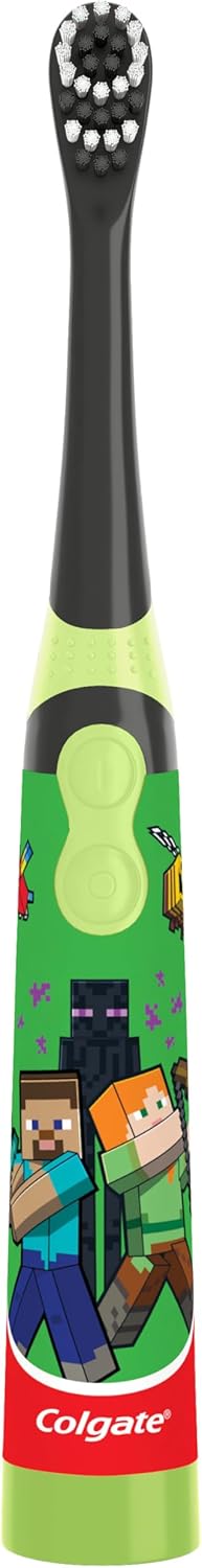 Colgate Kids Battery Powered Minecraft Toothbrush, Extra Soft Kids Battery Toothbrush with 1 AA Battery Included, Made for Ages 3 and Up, Features Easy On and Off Switch, Flat Lay Handle, 1 Count
