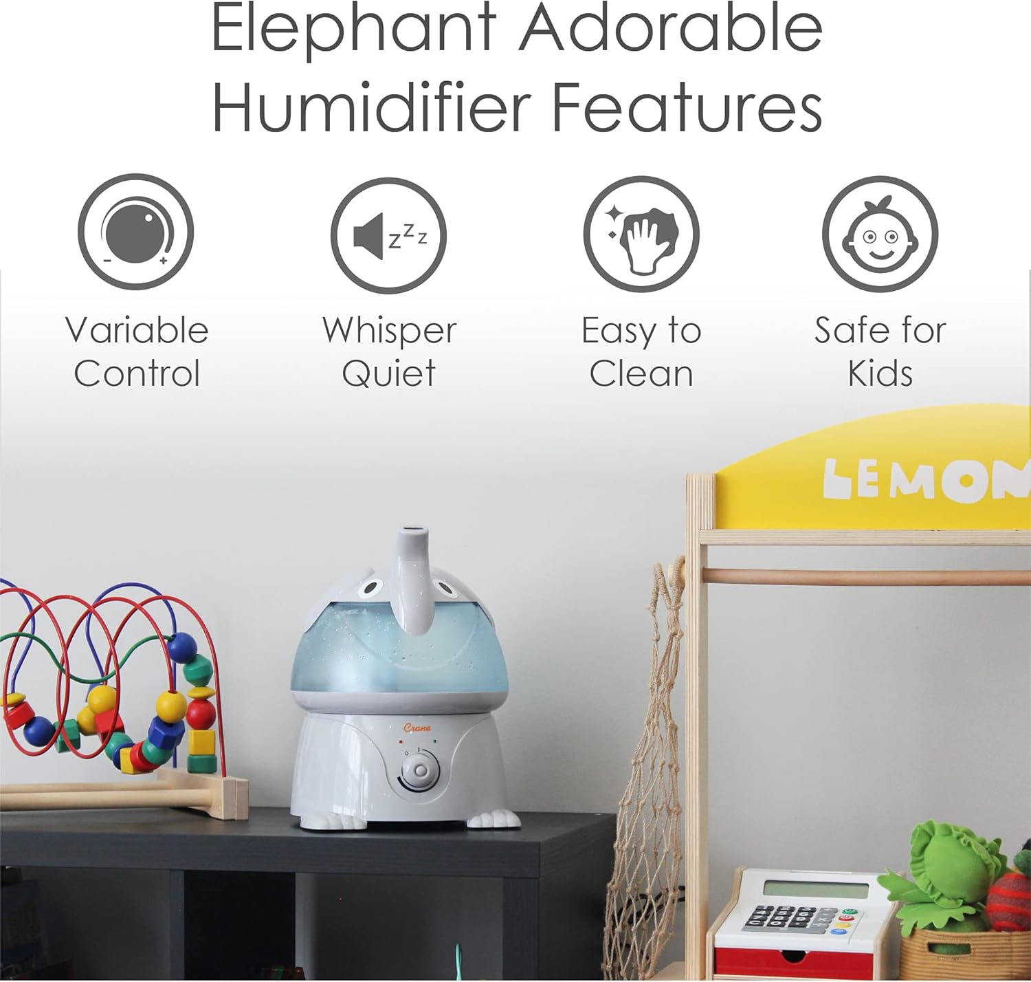 Crane Ultrasonic Elephant Humidifier, 1 Gallon Cool Mist Animal Humidifier for Nursery and Bedroom, Auto Shut-Off, Optional Filter