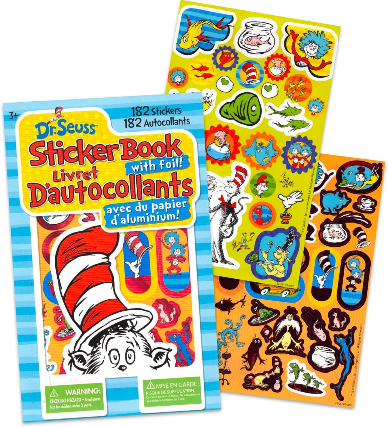 Officially licensed Dr. Seuss oral care toothbrush set for kids also includes Dr. Seuss stickers.