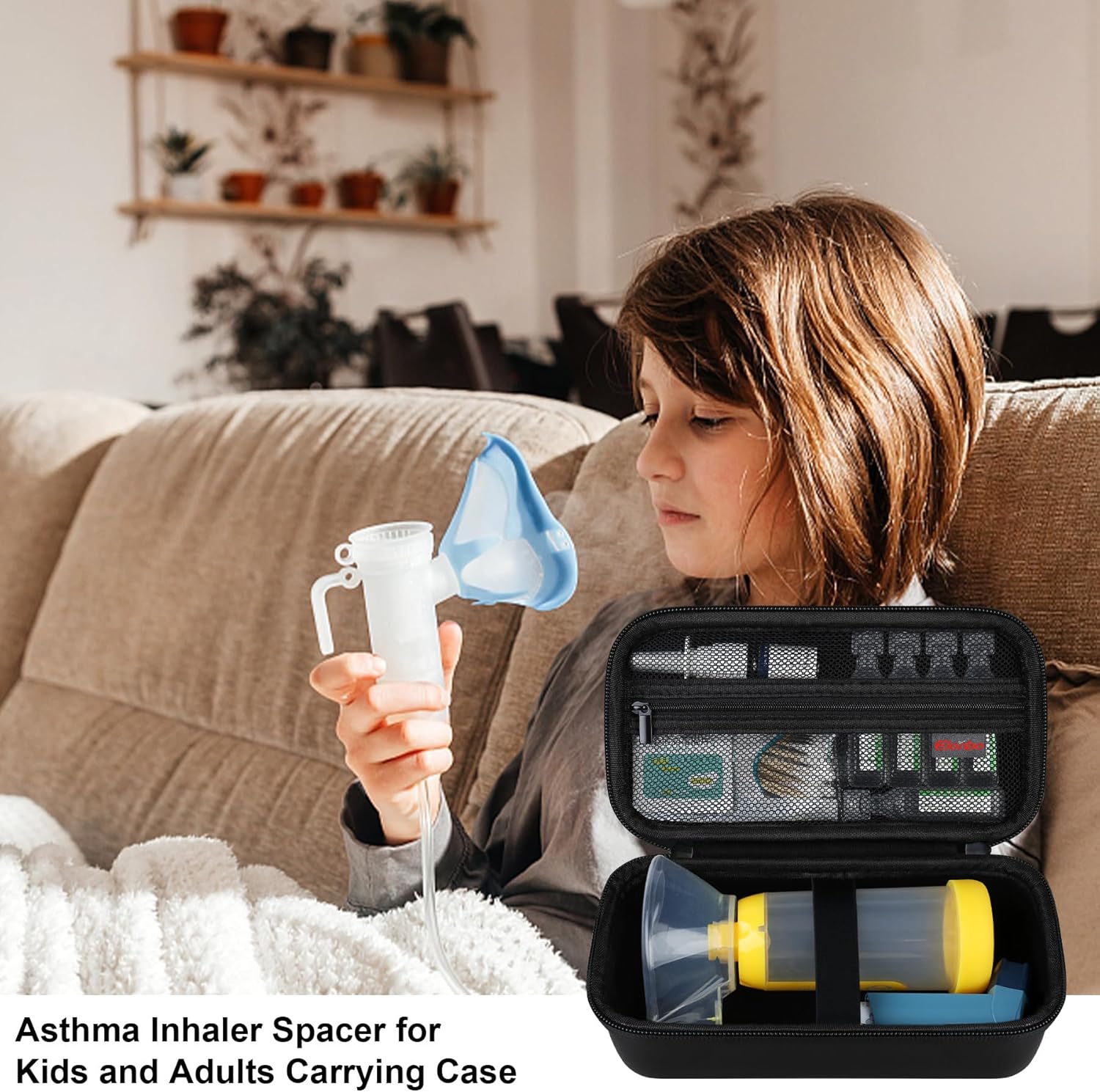 【Perfect Fits】This asthma inhaler spacer carrying case is specially designed for asthma inhaler, masks, inhaler spacer for kids and adults. Internal space 1:1 build. perfectly fit kids and adults masks inhalers, asthma spacer, allergy meds, ventolin inhaler. (CASE ONLY! device and accessories are not included)
