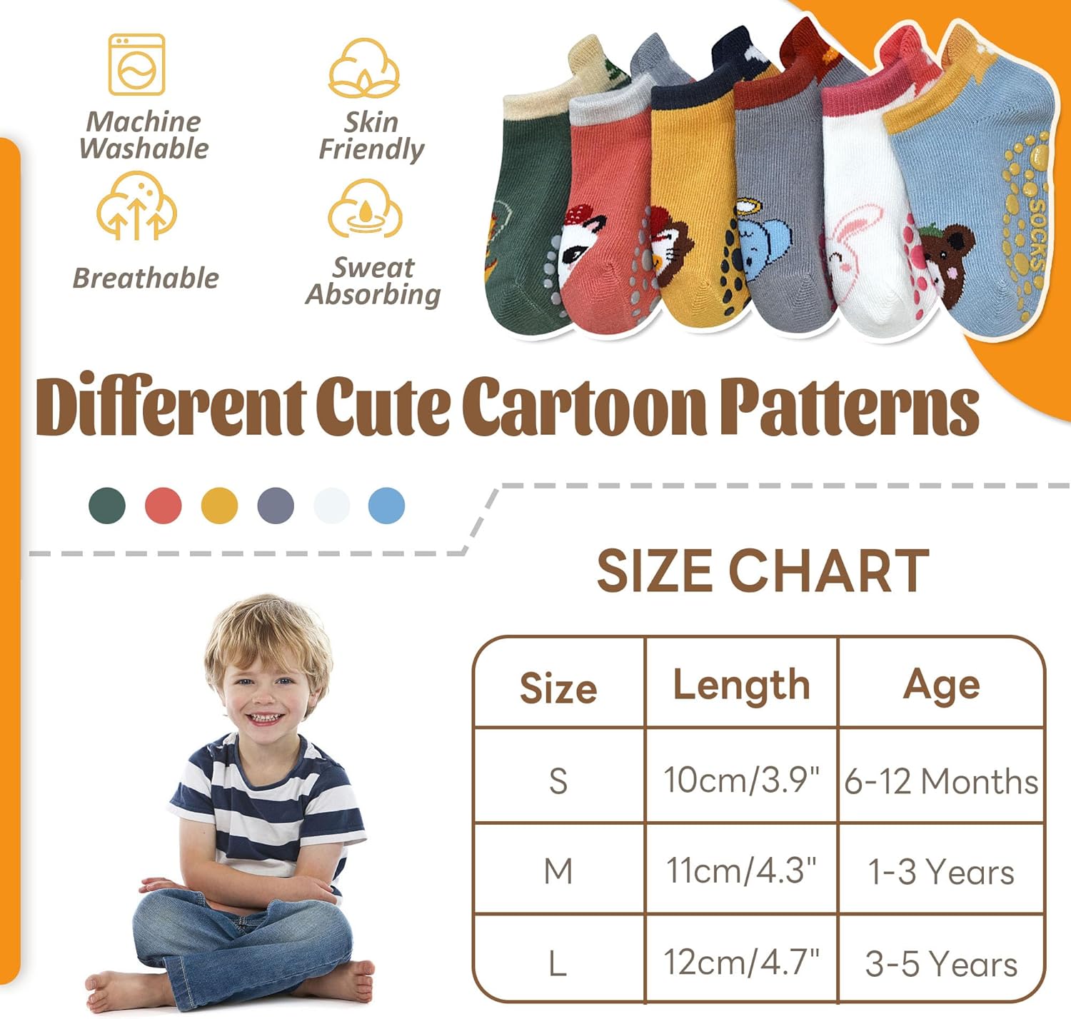 HYCLES Non Slip Baby Socks with Grip Non Skid Ankle Socks for 6-12 Month Infants 1-5 Years Toddlers Kids Boys Girls