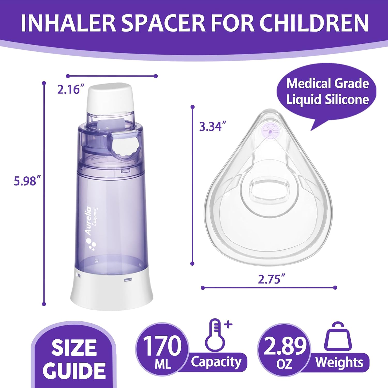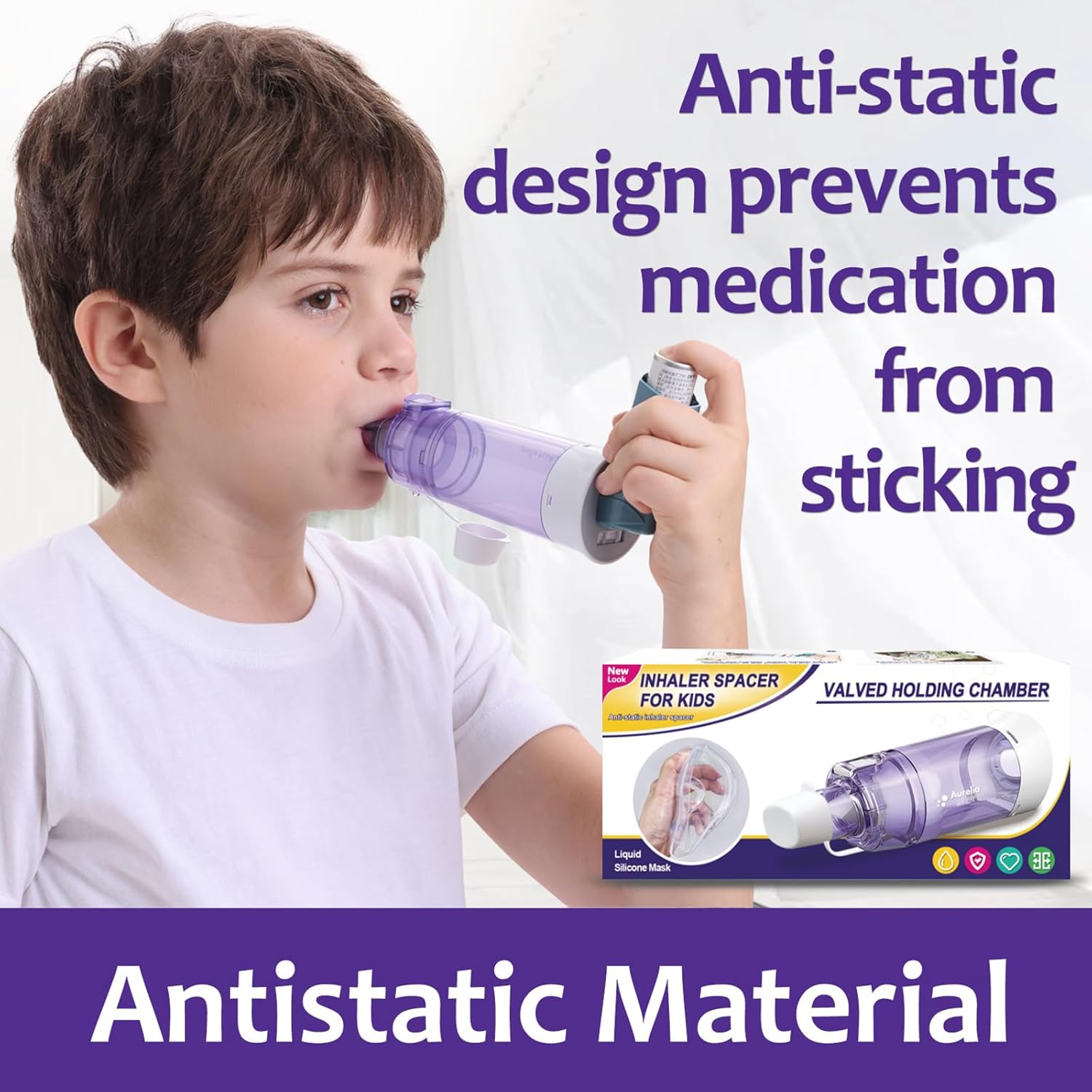 Inhaler Spacer for Children, Spacer for Inhaler with Soft Silicone Child Mask, Enhanced Medication Delivery, Anti-Static Chamber, Safe and Easy to Use