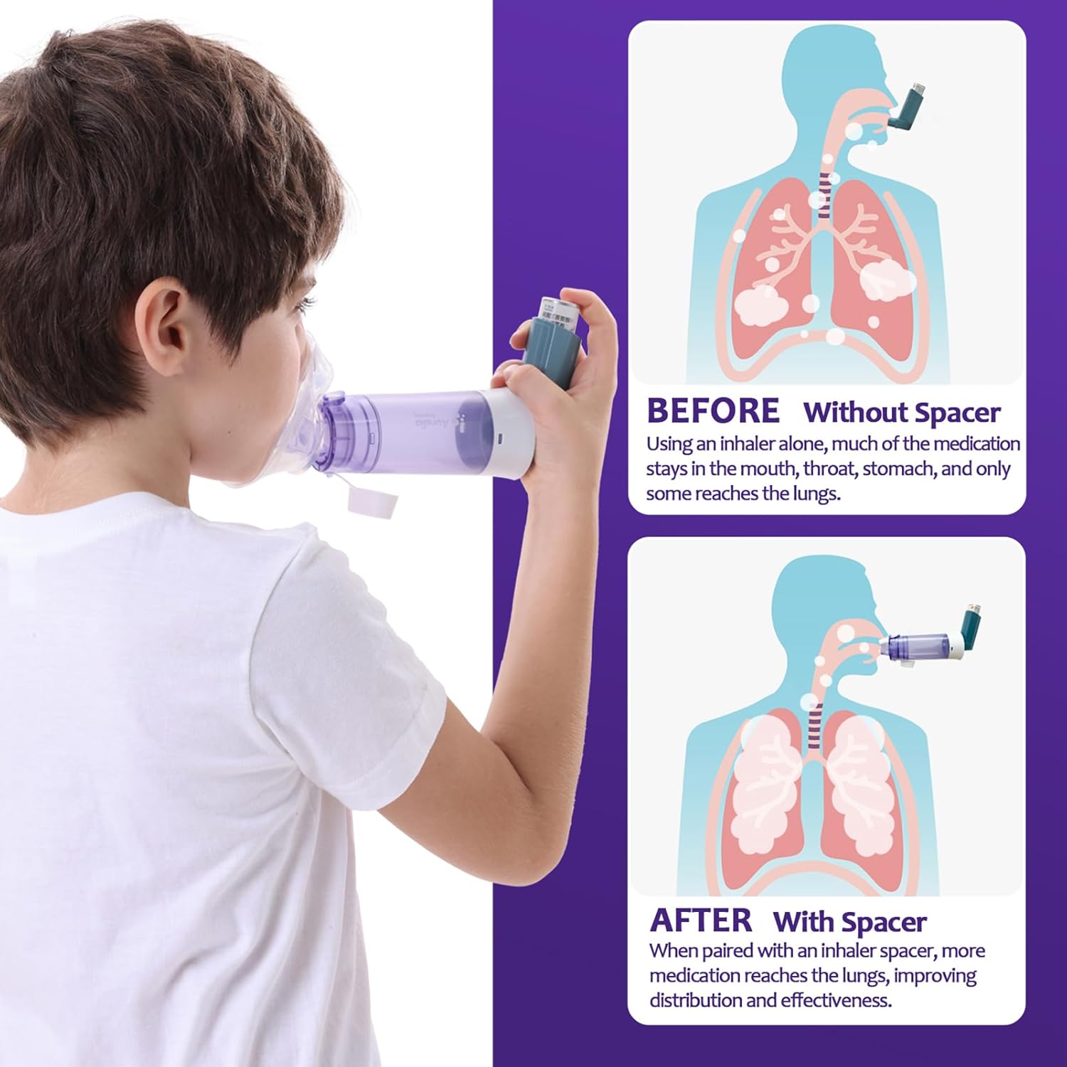 Enhanced Medication Delivery: Our inhaler spacer for children ensures more medication reaches the lungs with less wasted in the mouth and throat. Designed to maximize medication retention time, this spacer for inhaler provides more effective delivery for young users, promoting better results with each use.