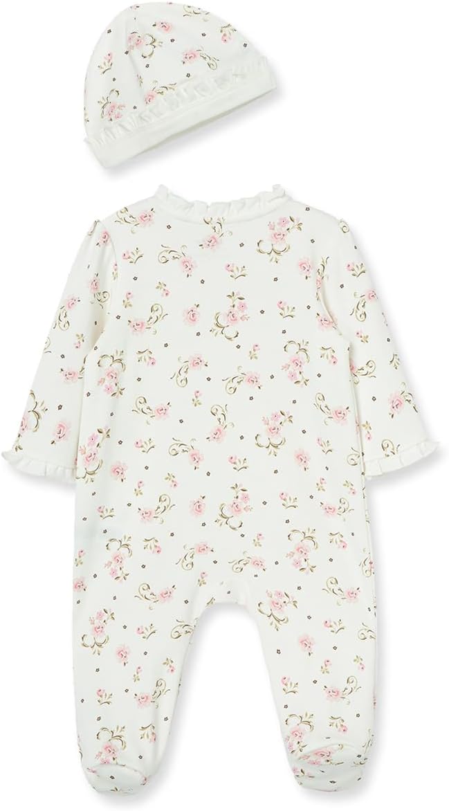 Little Me Clothes for Baby Girls 100% Cotton Scratch-Free Tag Footed One-Piece Romper and Hat Sleeper Set Preemie to 9 Months