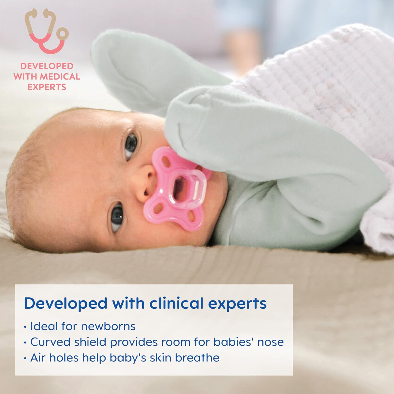 ONE-PIECE DESIGN: Full silicone pacifier, these specially-shaped newborn pacifiers meet the recommendation of the American Academy of Pediatrics.