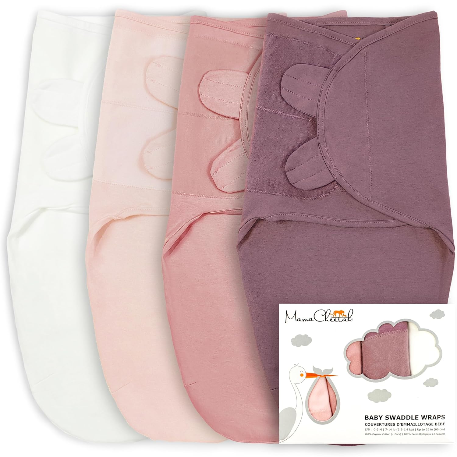 Mama Cheetah Preemie Swaddle Sack, Organic Swaddle Sleep Sacks for Preemies, Swaddle Blanket Wrap, Easy Swaddles for Premature Baby Girl 4-7 lbs, Newborn Essentials, 4-Pack