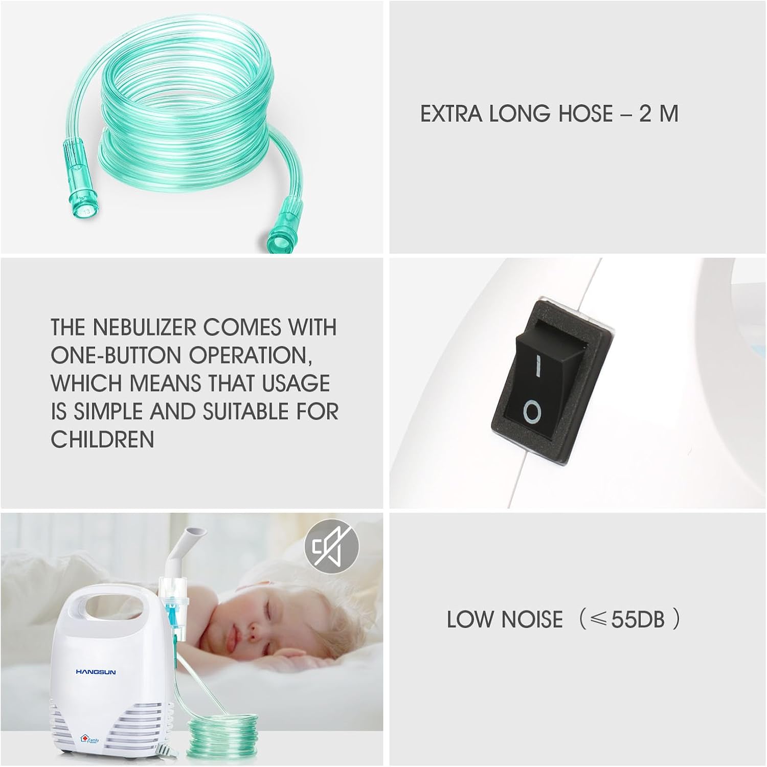 The nebulizer adopts a new generation of mute chip, which reduces the noise to below 55dB.