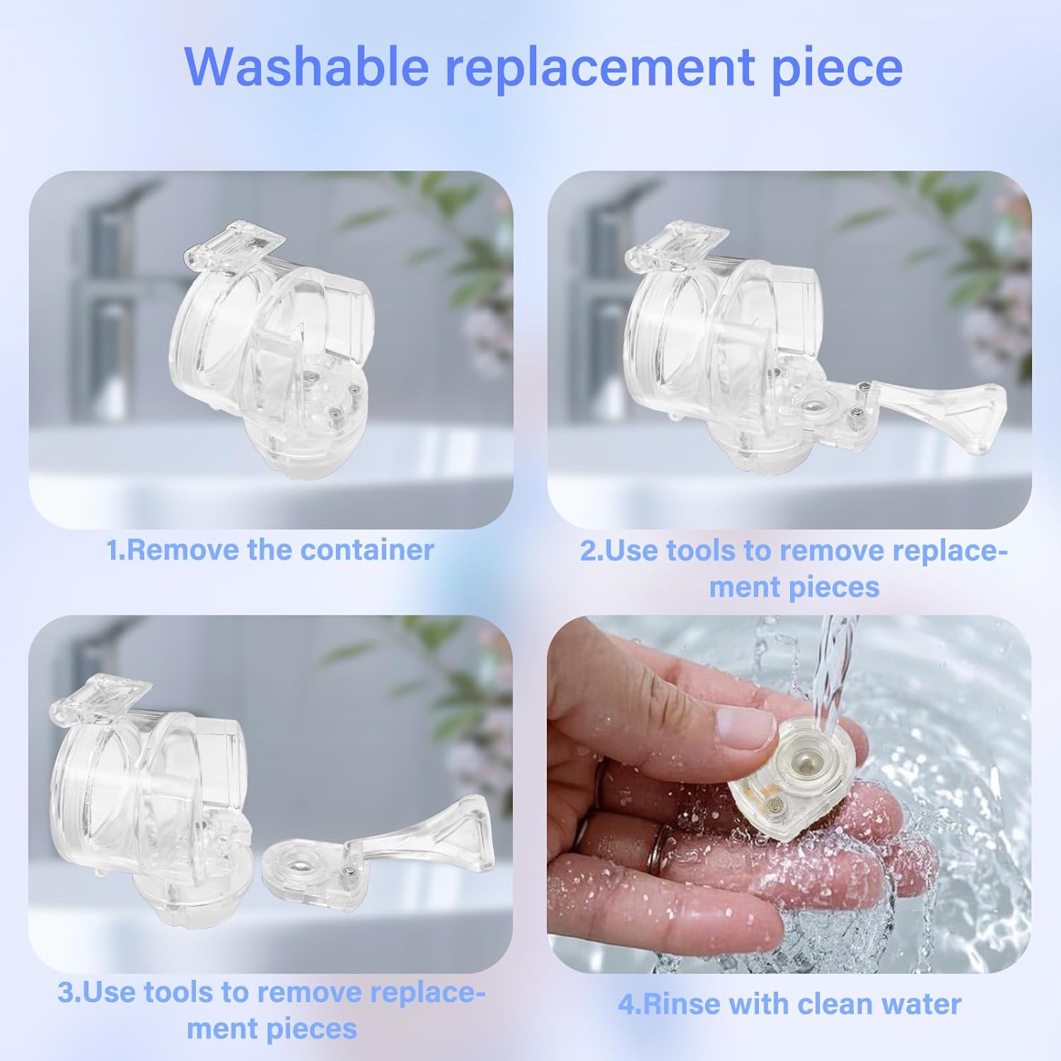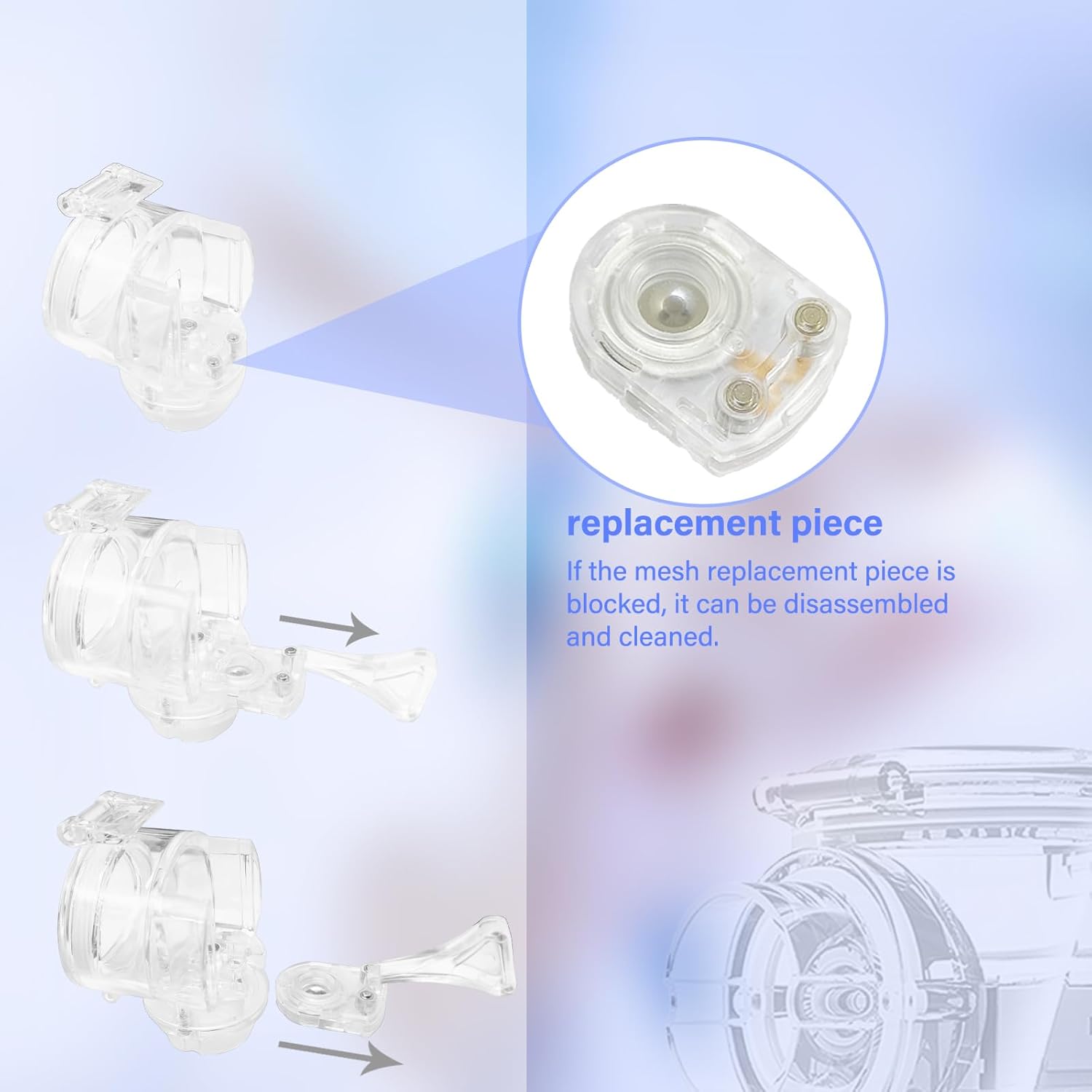 Convenient cleaning: This nebulizer has a convenient self-cleaning function, a detachable atomization nozzle and a micro mesh. Pull out the micro mesh with the provided tool and rinse it directly through the faucet. The micro mesh needs to be tightened to prevent water leakage.(The micro mesh cannot be wiped with a paper towel, otherwise it will easily get clogged)