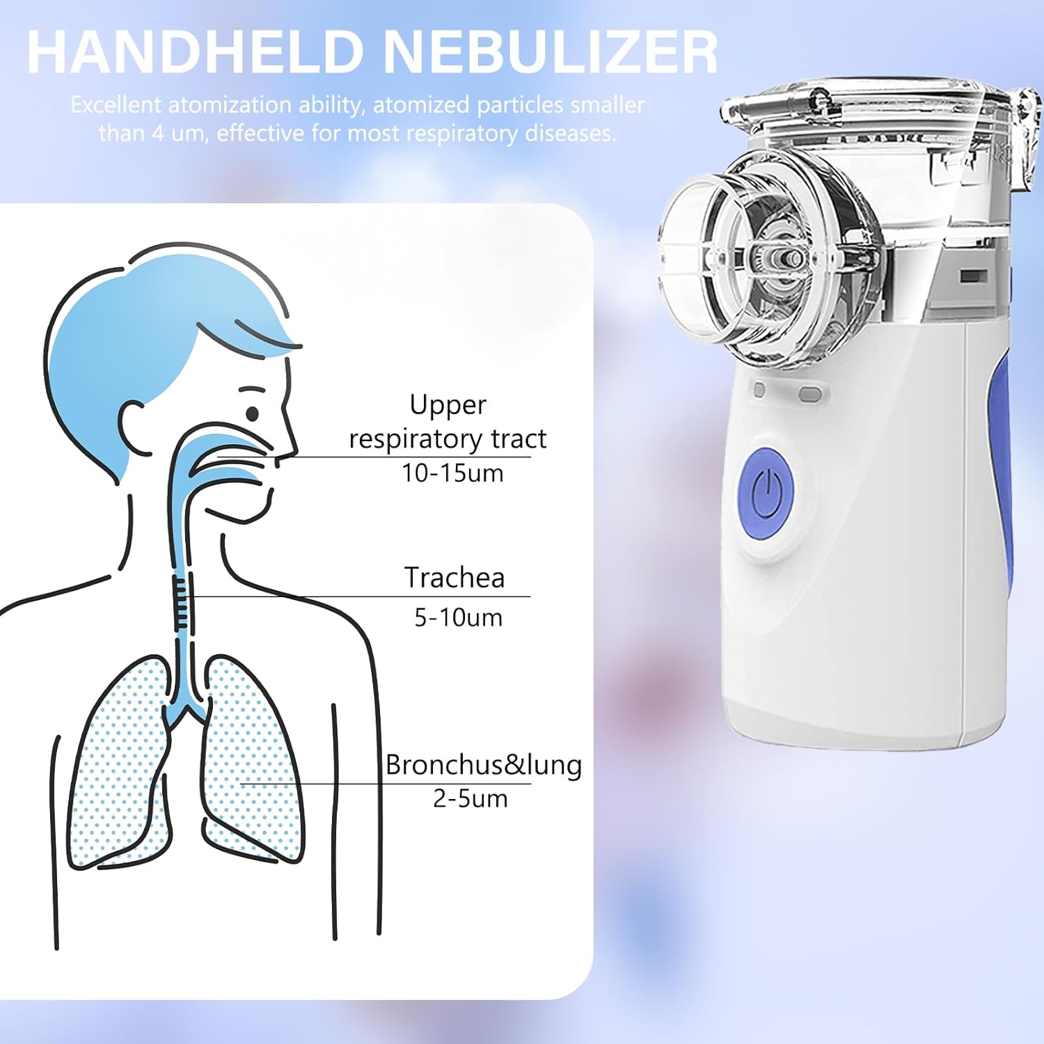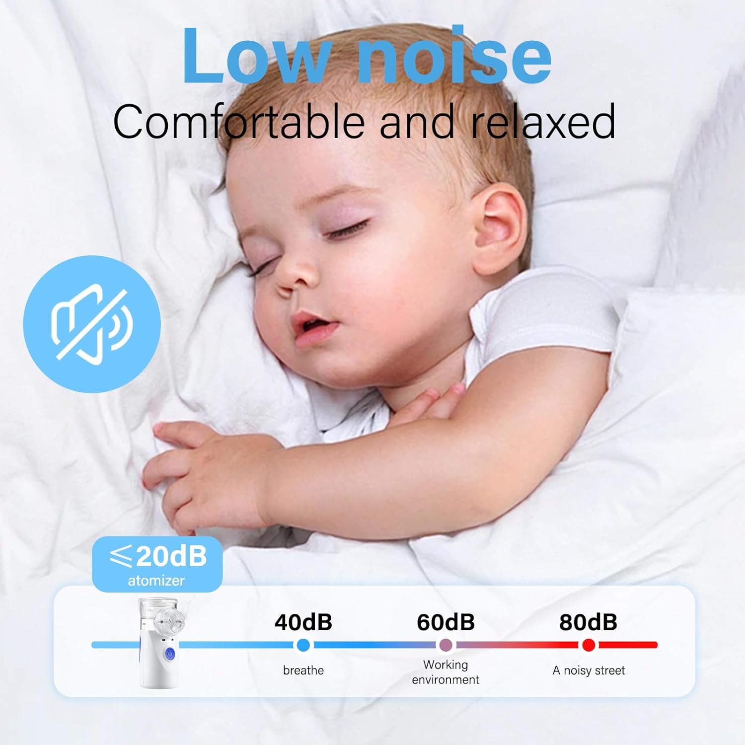 Low noise: The nebulizer runs quietly, with noise <20 decibels, and it will not disturb anyone even at night. Children can also inhale treatment while sleeping.