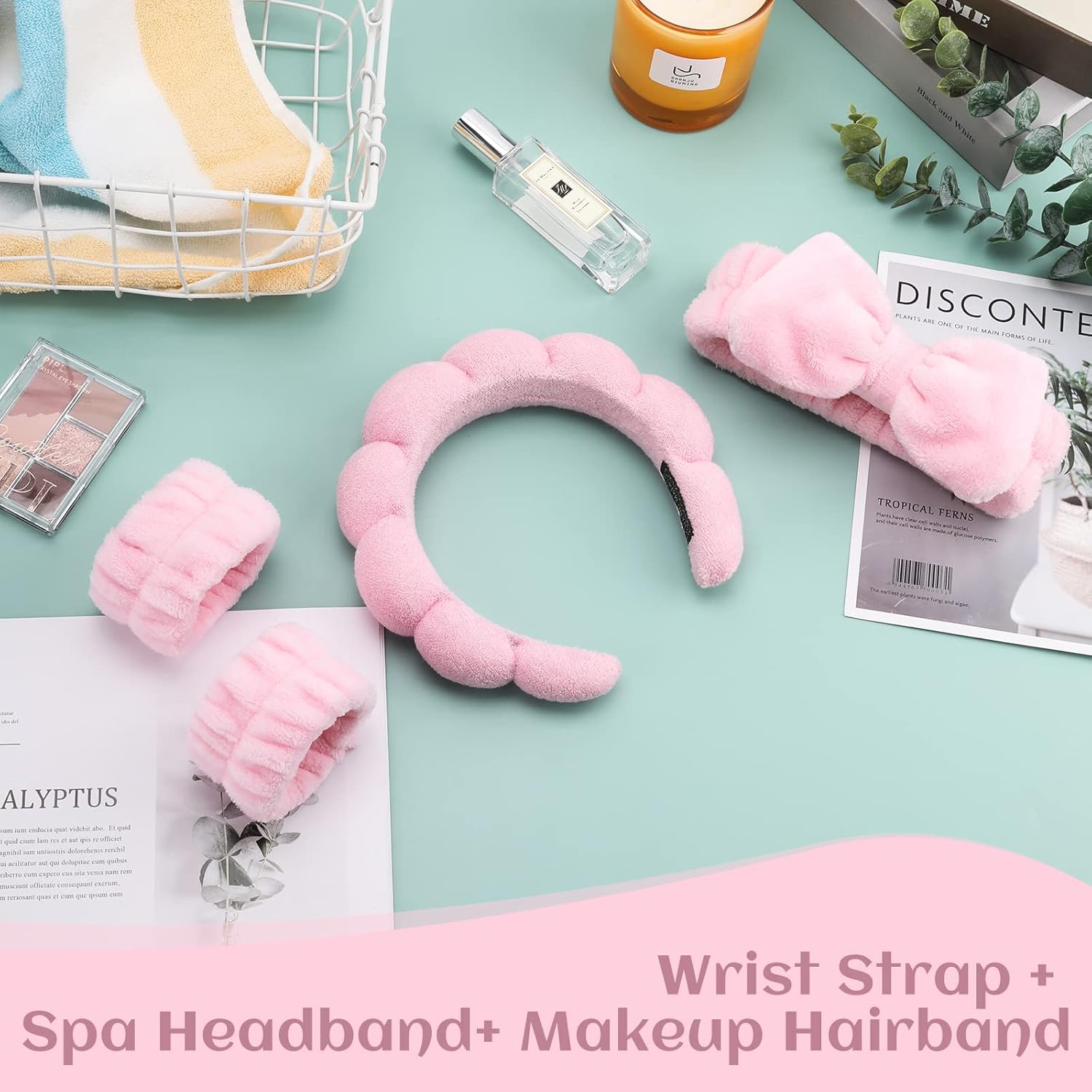 【PRACTICAL SET DESIGN】Spa headbands for women for washing face for Women set, which is stylish and cute. The skin care headbands and wristbands is full of girlishness. is soft and comfortable, safe to use, fluff won’t fall, and is very absorbent. headband for washing face wraps can be washable, resuable for less waste