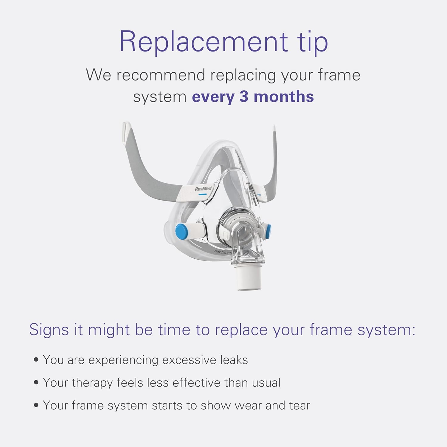 Headgear Not Included: This AirTouch Replacement frame system does not include the ResMed AirTouch F20 headgear