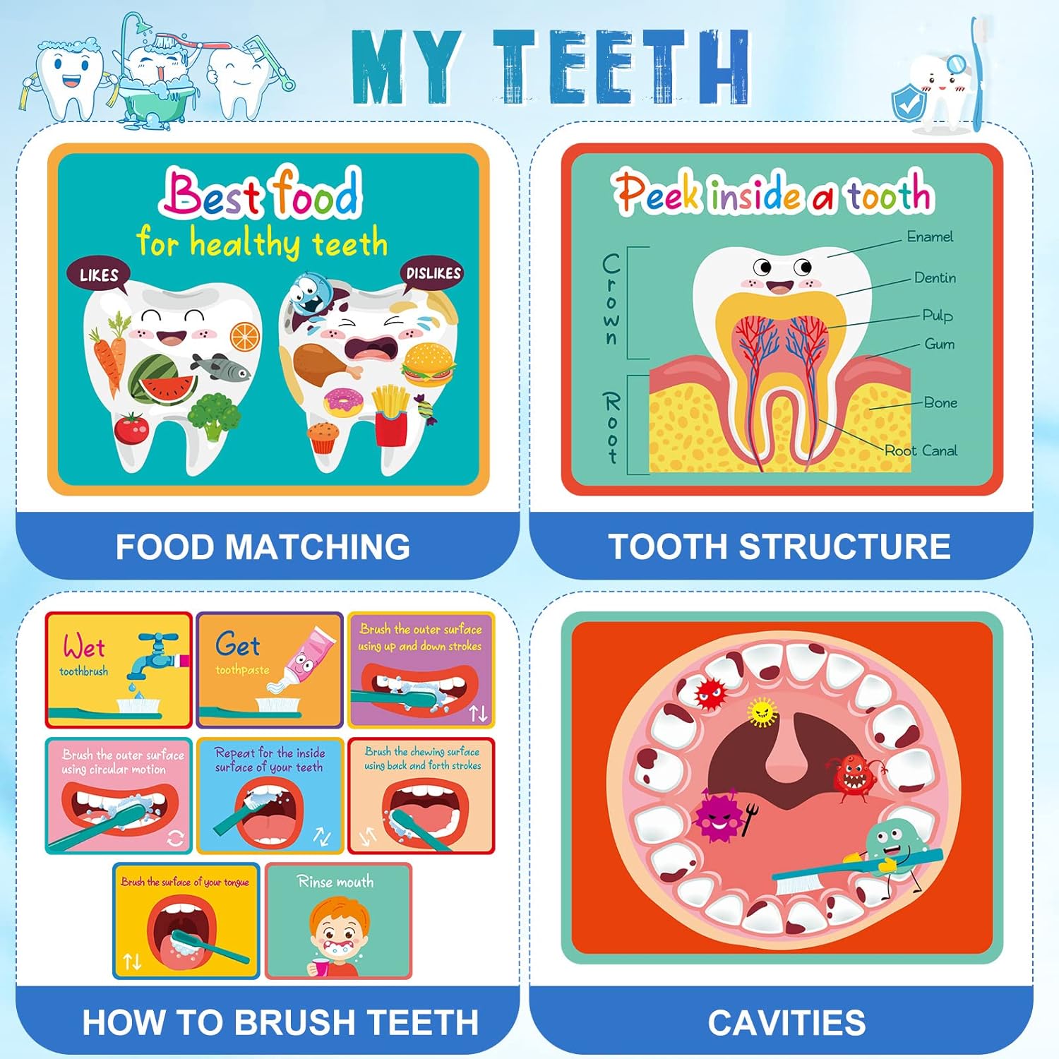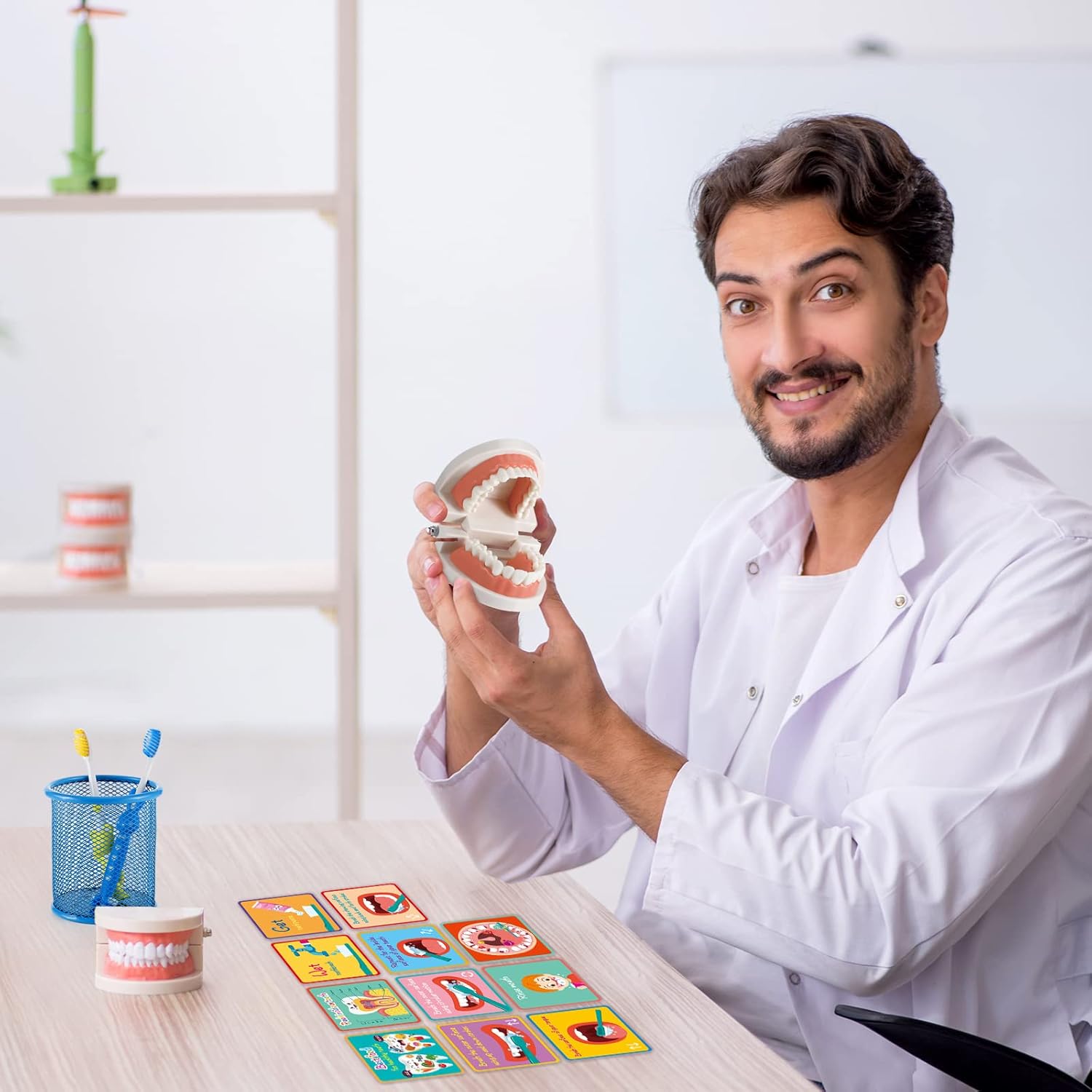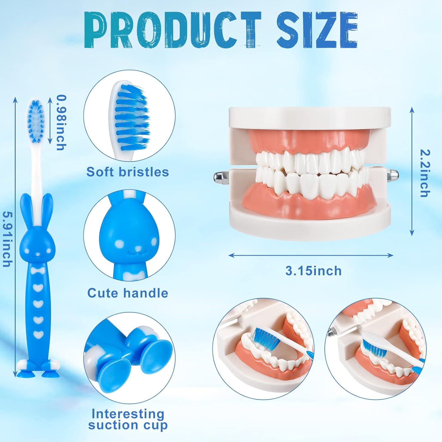 What You Will Get: the package includes 2 adult standard tooth models, 2 sets of cards with the theme of brushing teeth correctly, and 2 toothbrushes, the complete set is ideal for parents to teach young children to brush their teeth