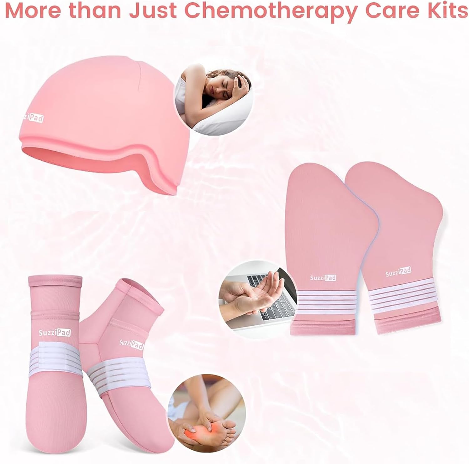 SuzziPad Chemo Care Package for Women & Men, Cooling Gloves and Socks for Neuropathy, Cold Caps for Chemotherapy, Ideal for Discomfort of Head, Hand, Feet, S/M