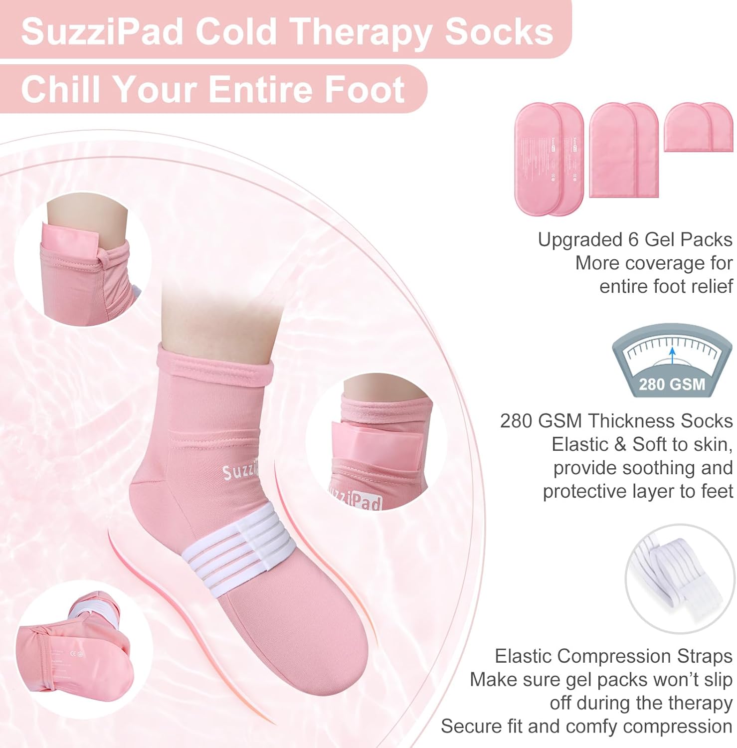 Enjoy Larger Cold Coverage to Foot: Our cold socks for chemotherapy neuropathy provide 30% more cold coverage than other ice pack socks in the market by upgrading the length of the gel ice pack and adding compression strap designed, to ensure the cold truly hits your entire feet. The foot ice pack wrap is specifically designed for chemo patients to avoid the potential side effects of neuropathy during chemotherapy and reduce foot discomfort.