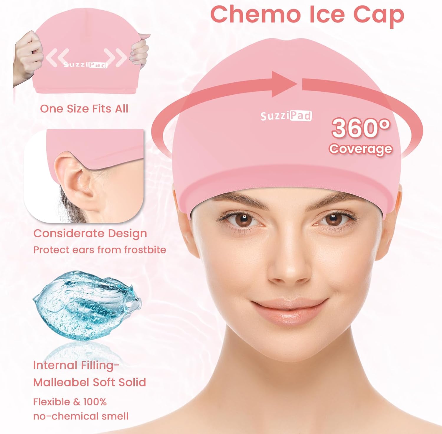Cold Caps for Chemotherapy: Our ice hat may help alleviate hair loss in chemotherapy by providing cold compress to reduce circulation and constricting blood vessels, offering all-around cooling and therapeutic relief. Chemo cooling cap also helps with migraines and stress relief. Chemotherapy cold cap is made of malleable gel and stretchable lycra material,which makes the cooling hat flexible and perfectly snug-fit on head even frozen.
