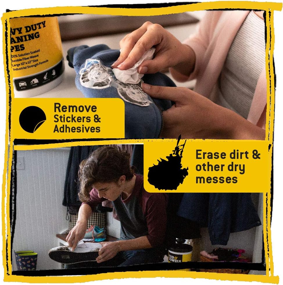 Use these tough cleaning wipes on Fabric and Carpet, Leather, Vinyl, Metal, Counter Tops, Walls, For Cleaning Appliances, Tile, Cabinets, Toilets, Tubs and more