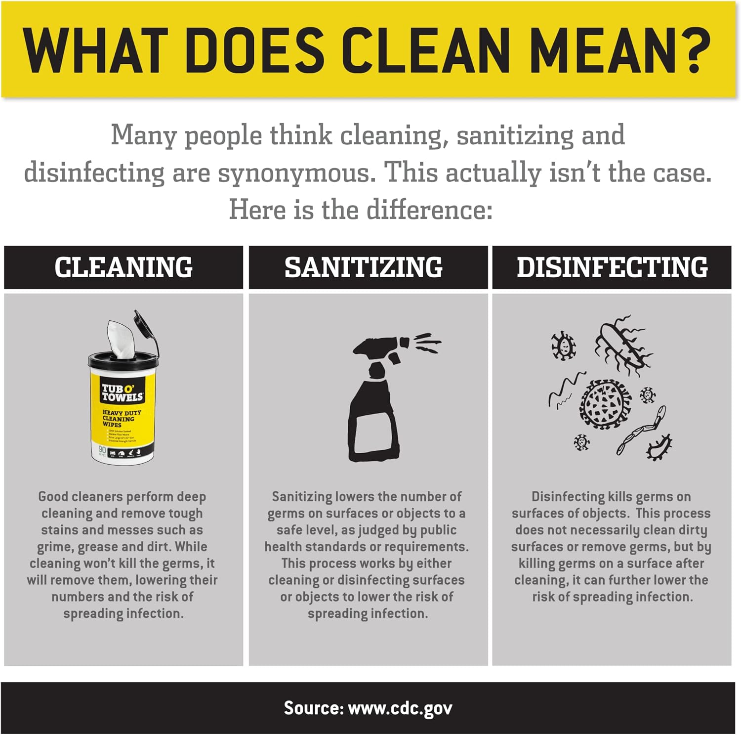 Tub O Towels TW90 Heavy-Duty 10″ x 12″ Size Multi-Surface Cleaning Wipes, 90 Count Per Canister